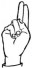 На ћирилици написано МИЛОШ ОЛУЈИЋ састоји се из 11 слова [?]. Исписано ћириличном једноручном азбуком за глувонеме:
